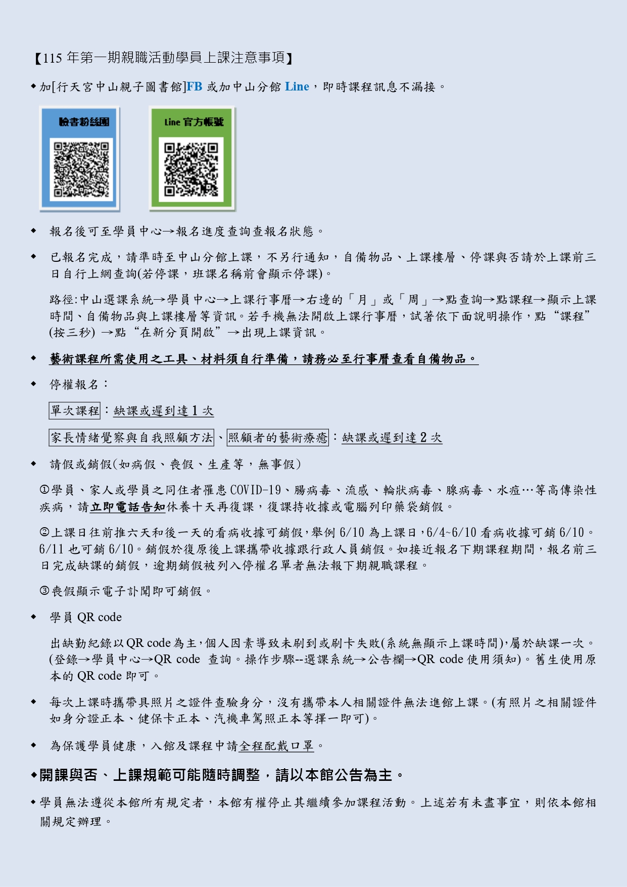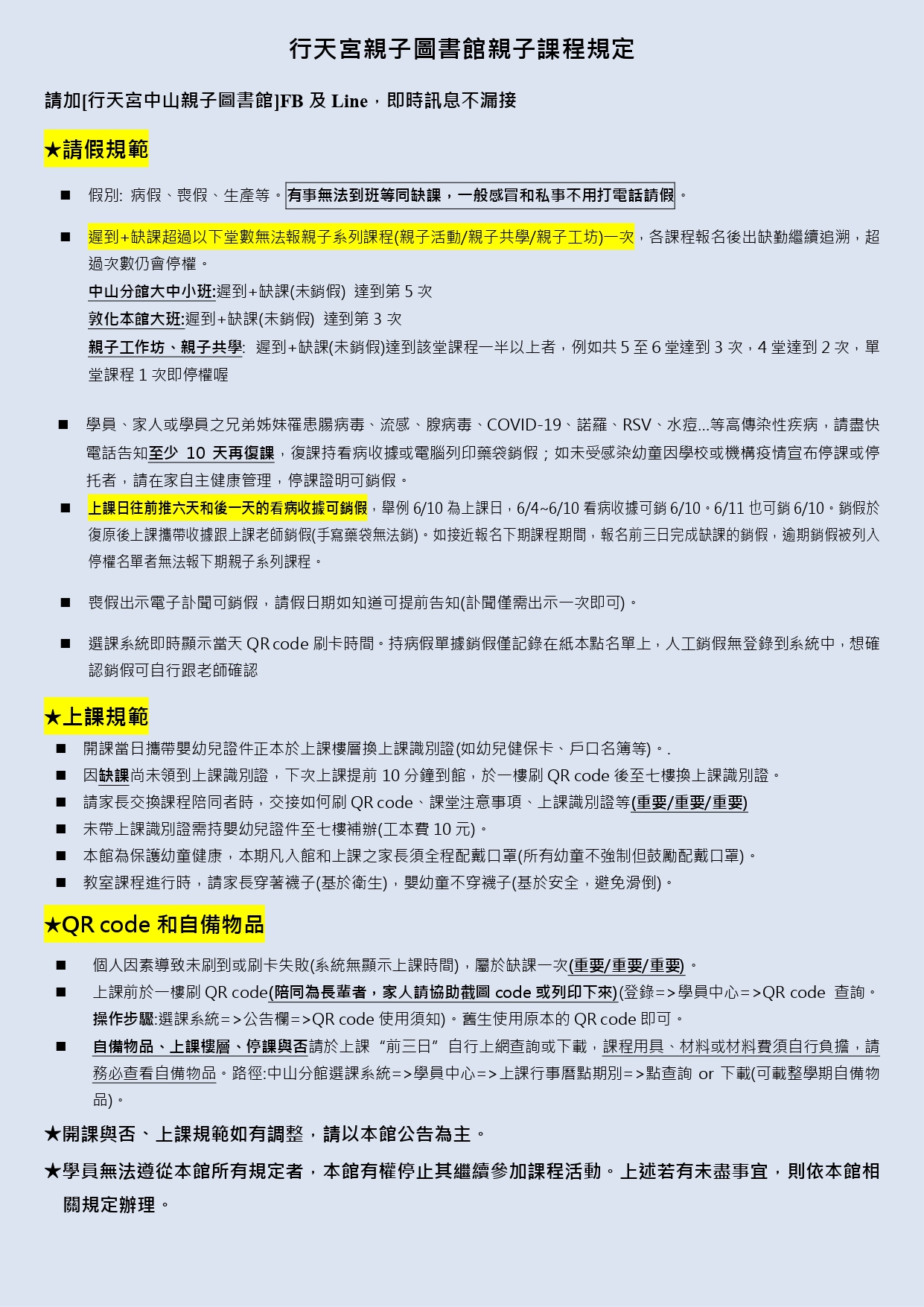其餘親職、親子工作坊、親子共學依上課行事曆為準